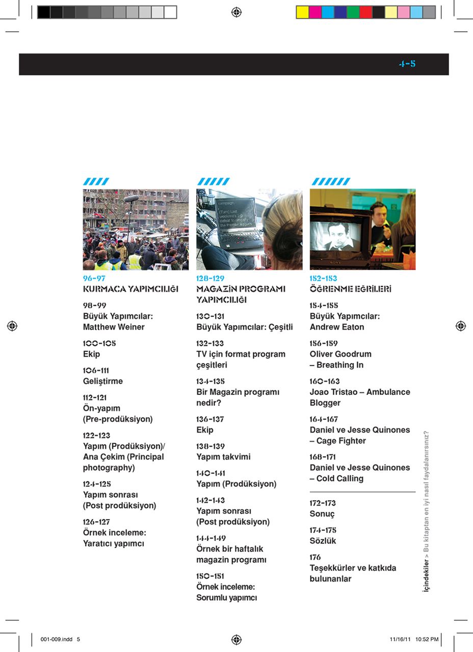 Kitap, öğrenci yapımcının, yapım sürecini, geliştirme aşamasından yapım sonrası ve dağıtım aşamasına kadar kavraması ve yönetebilmesine  yardımcı olmak amacıyla tasarlanmış bir şekilde yapımın farklı alanlarına geniş ve çaplı bir bakış açısı sunuyor.