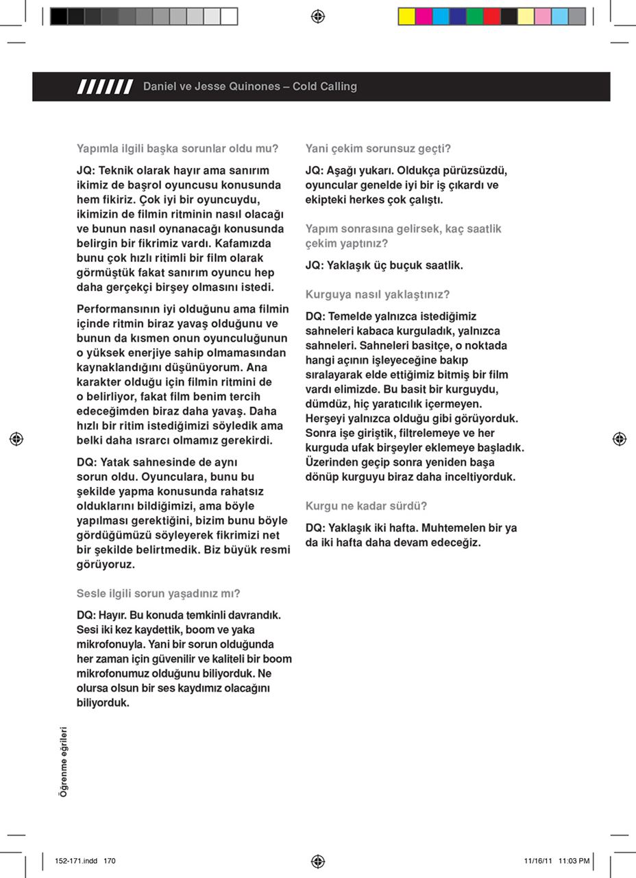 Sonuç olarak bu kitap, güncel sektör uygulamalarına dair kullanışlı bilgiler vermenin yanı sıra deneyimsiz sinemacıların gerekli becerileri geliştirmesine yardımcı olmayı ve onlara ilham vermeyi amaçlıyor.